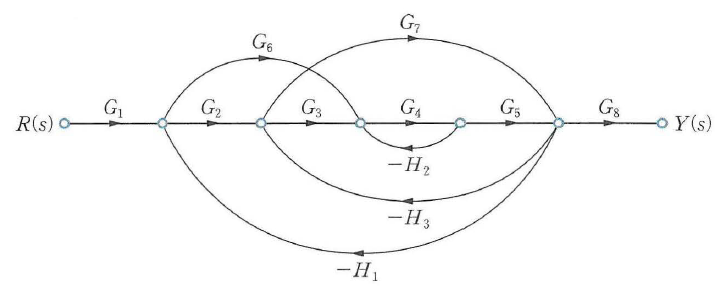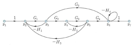 : 1 - (모든 개별 루프이득의 합) + (공동 마디가 없이 떨어져 있는 루프 중 두 개씩 조합하여 이득을 곱한 값의 합) - (공동 마디가 없이 떨어져 있는 루프 중 세 개씩 조합하여 이득을 곱한 값의 합) + (...)